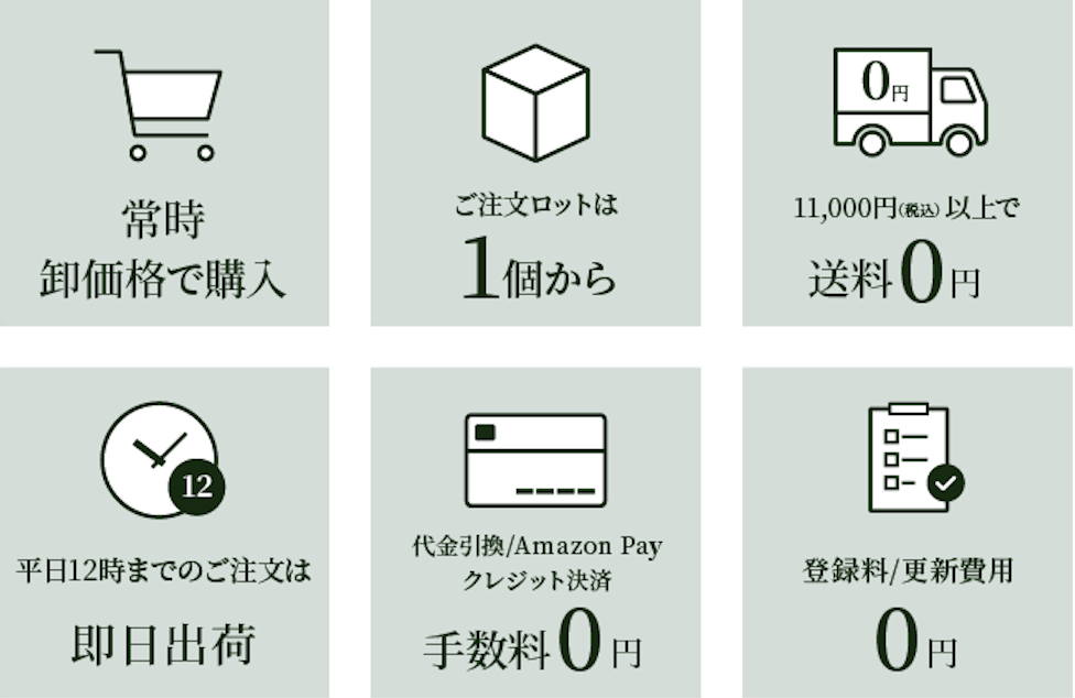 業務(各種サロン、ショップ、スクール、治療院、病院など)でお取引いただけるお客様。個人名ではお取引いただけません。業務お取引名(ショップ名等)でのご登録となります。